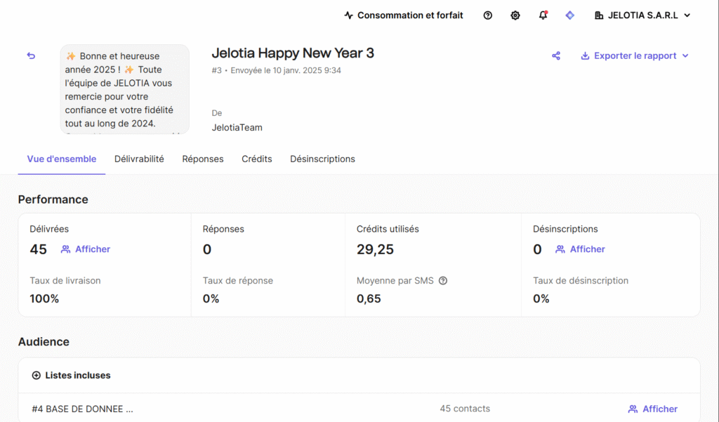Oui, chaque campagne inclut un rapport détaillé sur les taux d’ouverture, de clics et de conversion.